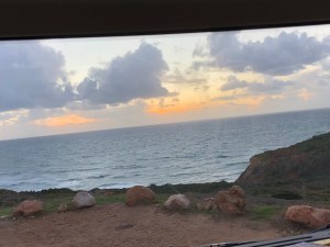 Nous poserons notre maison sur le haut des falaises de la pointe du phare, à l’extrême sud-ouest du Portugal. Quelques rayons de soleil nous ferons coucou, avant d’être engloutis par la nuit.